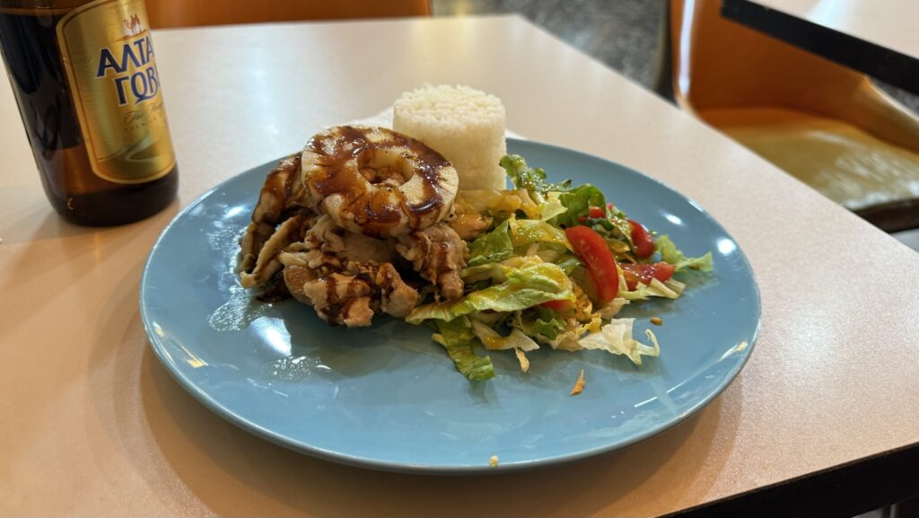 ソースは何かわかりませんがパイナップルと合わせて甘みがあって美味しいです。味も量もちょうどいい感じで、カラコルムにいる時は毎日通っていました。滞在中に食べた中ではこれが一番好きです。