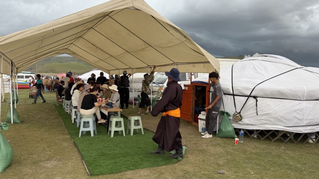 これはモンゴル家庭料理の中でもナーダムでよく食べられるものらしく、多くの露天というか簡易食堂が並んでいます。