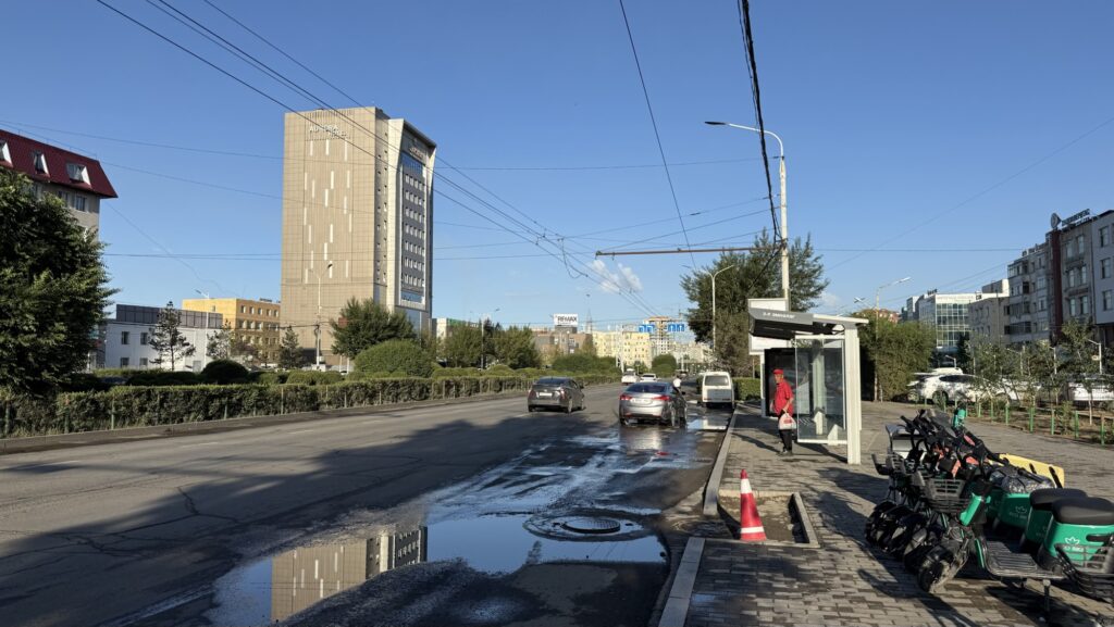 ウランバートルでは白タクが非常に多く走っています。外見からはどれが白タクかわからないため、道路沿いで手を軽く挙げつつ待ちます。