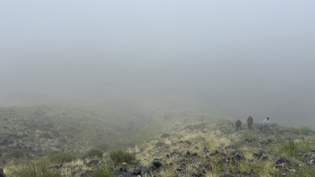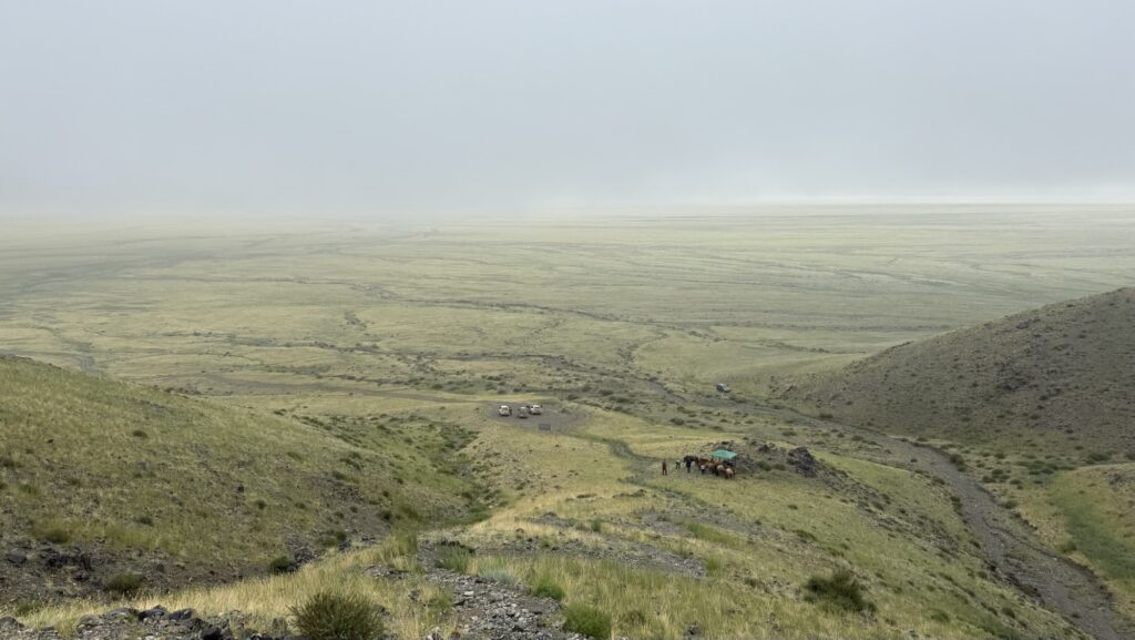 麓から岩絵までは往復でおよそ1時間。下山する途中で少し霧が晴れ、荒野の一部が見渡せました。
