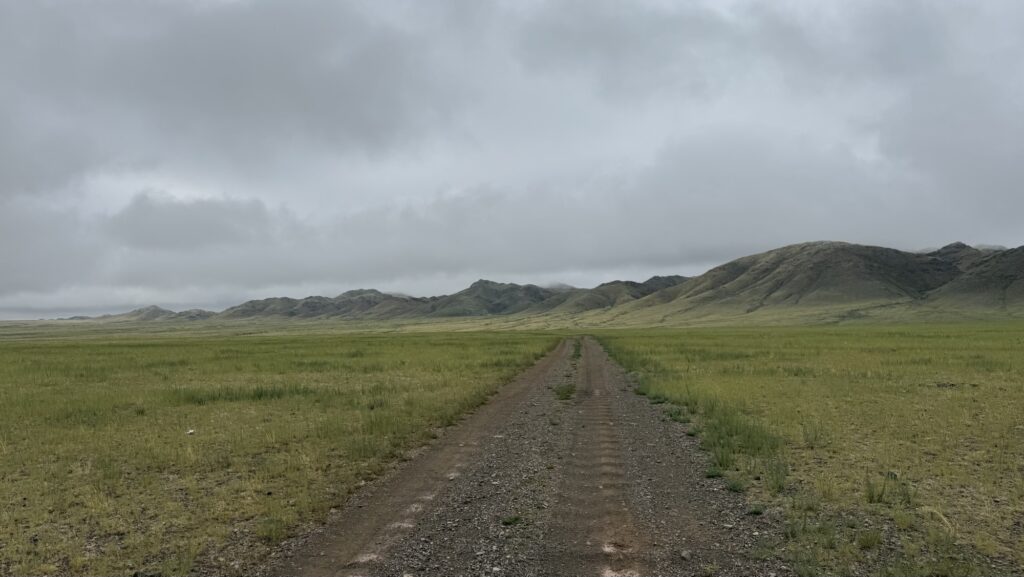 朝9時45分ごろ、市内を出発しました。最初はバヤンダライ(Bayandalai)という町へ続く舗装道路を軽快に進んでいましたが、途中で方向を変えて荒野へ。