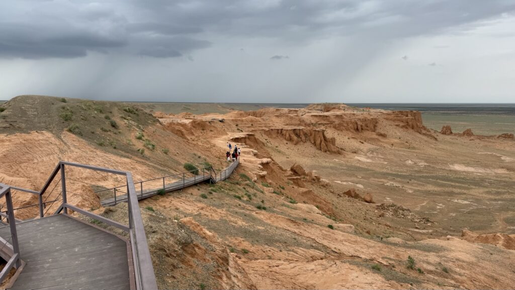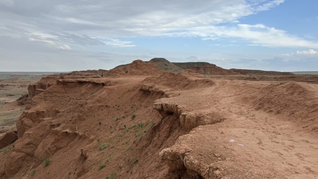 現在も化石が発見される可能性が高く、訪れる人々は地質学的な迫力と太古の記憶が宿る大地の空気を同時に味わうことができます。荒涼とした砂漠に浮かぶ赤い断崖は風景としても壮大で、自然と歴史の神秘を体感できるモンゴルを代表する観光地のひとつです。