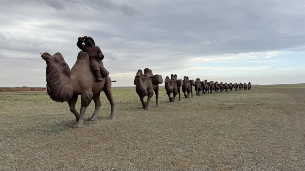 展望台の近くには「茶の道」にちなんだラクダの像が並んでいます。