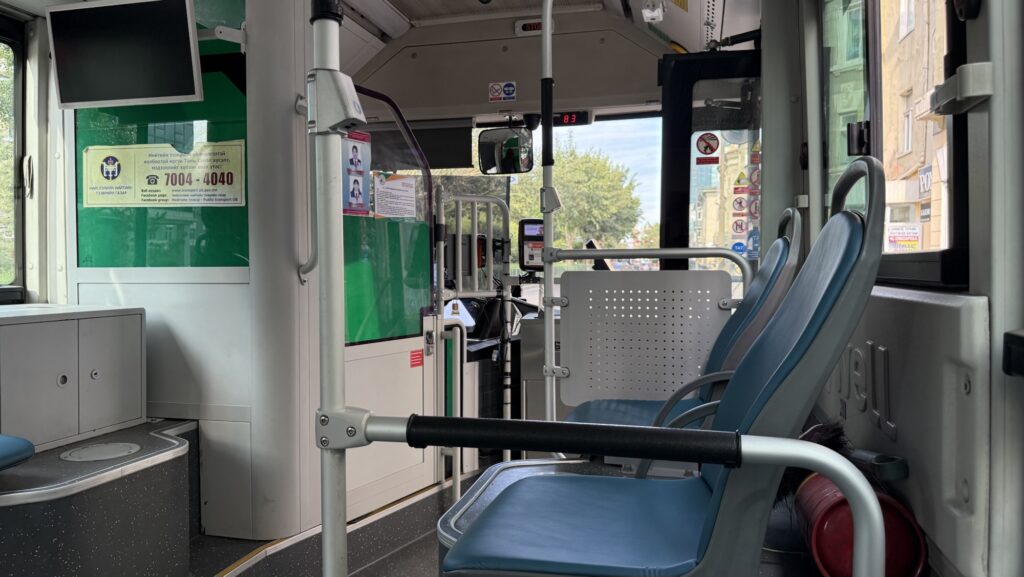 ちょうどЧ:57路線バス一本で広場近くのホテルまで行けそうだったので乗車。このすぐ後にももう一台視界に見えていたので頻発しているよう。