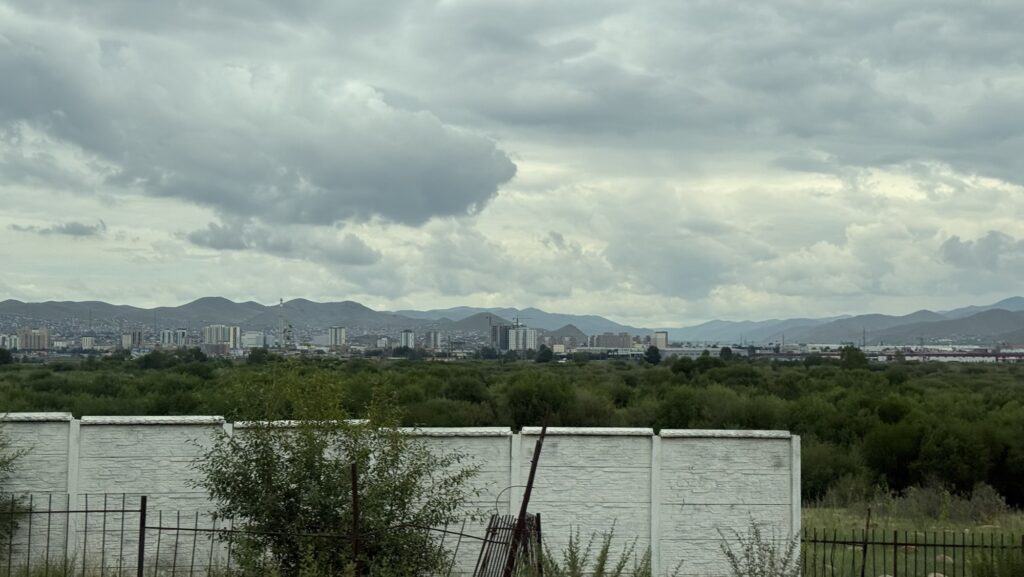 ホテルはスフバートル広場を抜けて郊外へ向かいます。右側通行で左折禁止とかが多く、行きたい方向に行けず遠回りするので時間がかかります。まあこういう制限がないとみんな好き勝手に走ってカオスになるのでしょう。