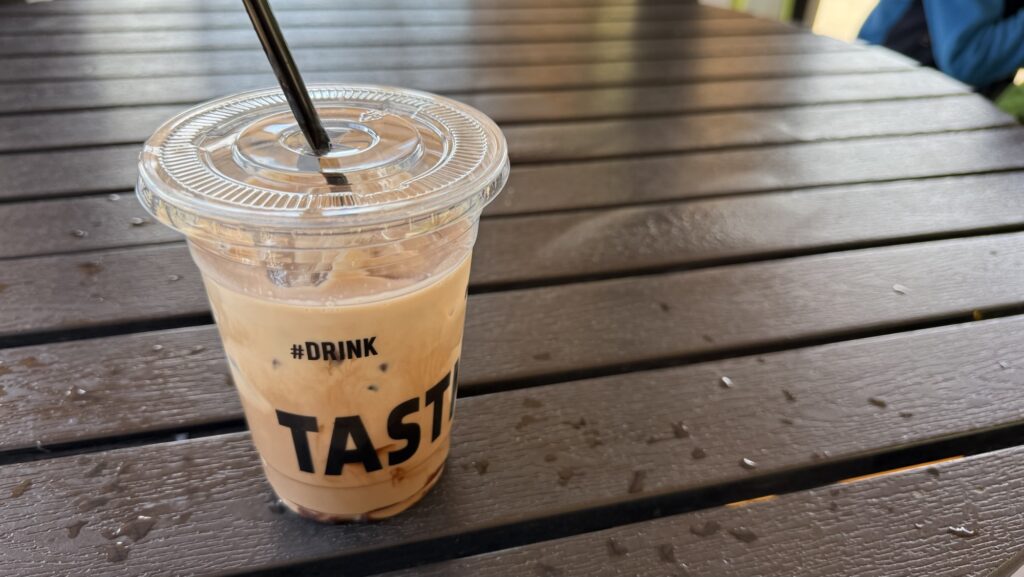 入口にあったカフェで休憩。園内だとここか亀石付近にしか入りやすいカフェはなさそうです。いいホテルの中とかにあるかもしれませんが外からだとわかりません。