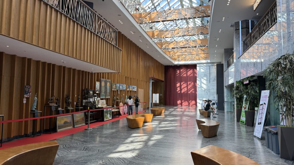 低層階には映画館とかが入っているものの、普通のショッピングモールと比べて店舗が全面に出ておらずマネーっぽさがあまりありません。