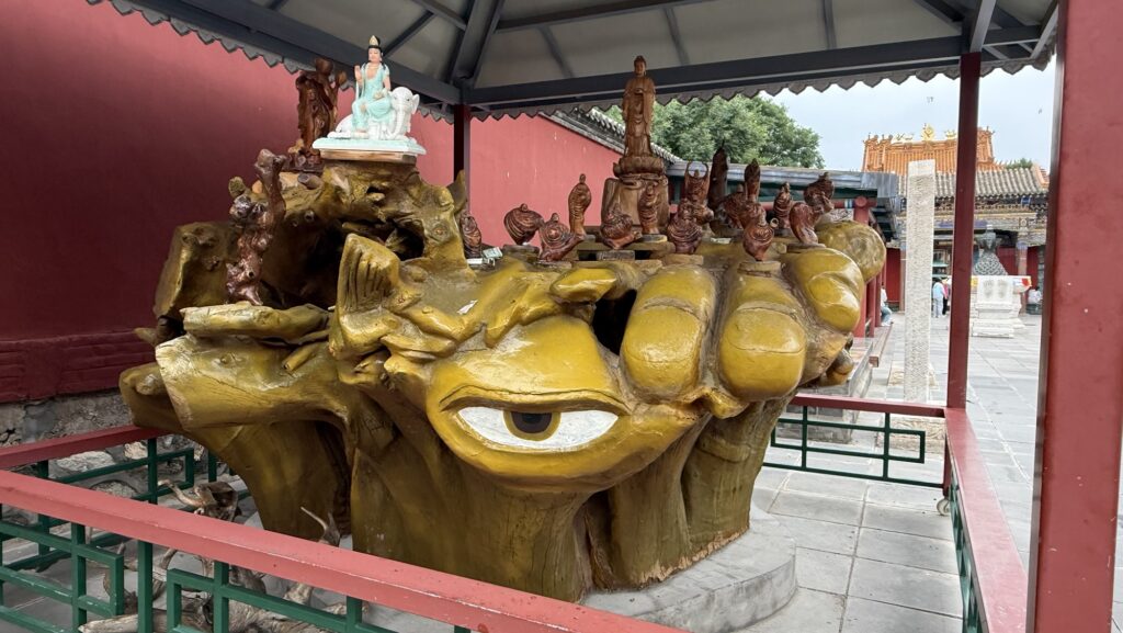 建物の内部はチベット仏教風です。仏像には漢字とモンゴル文字で名札が付けられているのでありがたい(撮影可かわからなかったので写真はありません)。