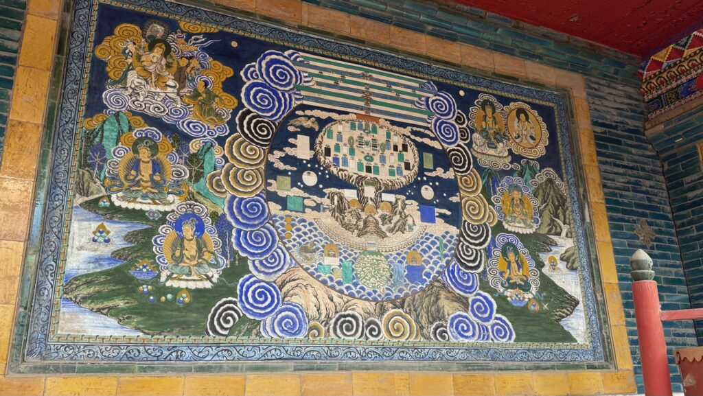 寺の中心には、高さ約2.5メートルの純銀製の釈迦牟尼仏像が安置されており、これが「銀仏寺」とも呼ばれる所以です。 壁画や龍の彫刻、法具、仏教経典、仏教用品が豊富に保存されており、明・清時代の芸術性・宗教性をよく伝えています。 また、1586年には第3代ダライ・ラマがこの寺を訪れ、銀仏への開眼式を行ったと伝わっています。 康熙帝も訪れた記録があり、歴史的にも皇室との関わりをもつ文化遺産とされています。
