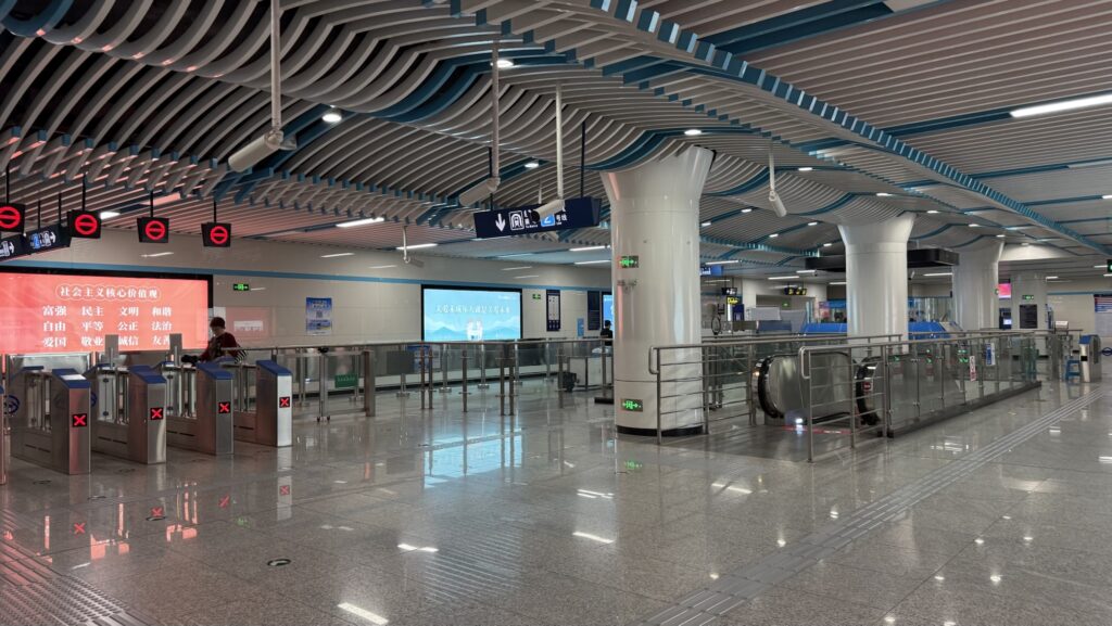 ショッピングモールに直結した地下鉄の大学西街駅からフフホト駅まで3駅のため地下鉄で帰ります。