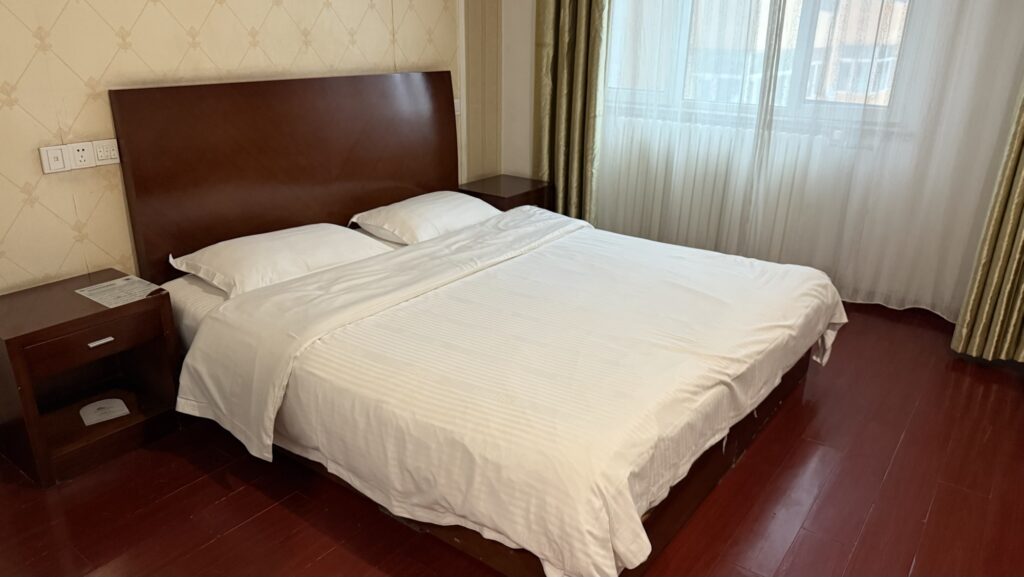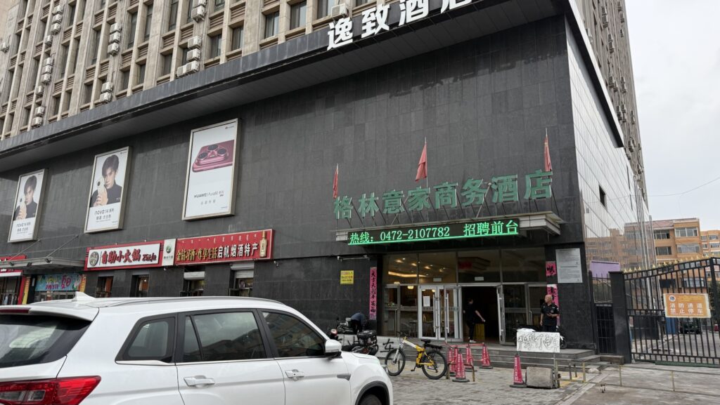 予約したのは「格林意家ホテル」で一泊約2,400円。フフホトからさらに半額くらいになりました。まあ駅から離れてますし、タクシー代考えるとそんなに安くもありません(路線バスでも行けますが一時間くらいかかる)。