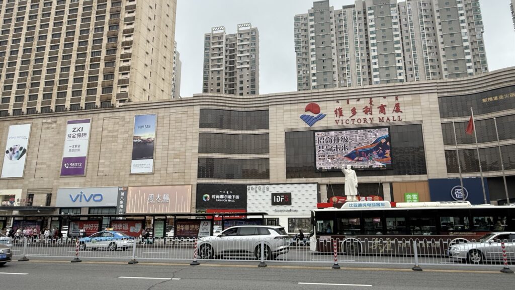 ホテル周辺にはローカル食堂くらいしかなく暇すぎるので、近くのショッピングモール「ビクトリーモール(维多利商厦)」へ路線バスで行ってみます(1元、約20円)。