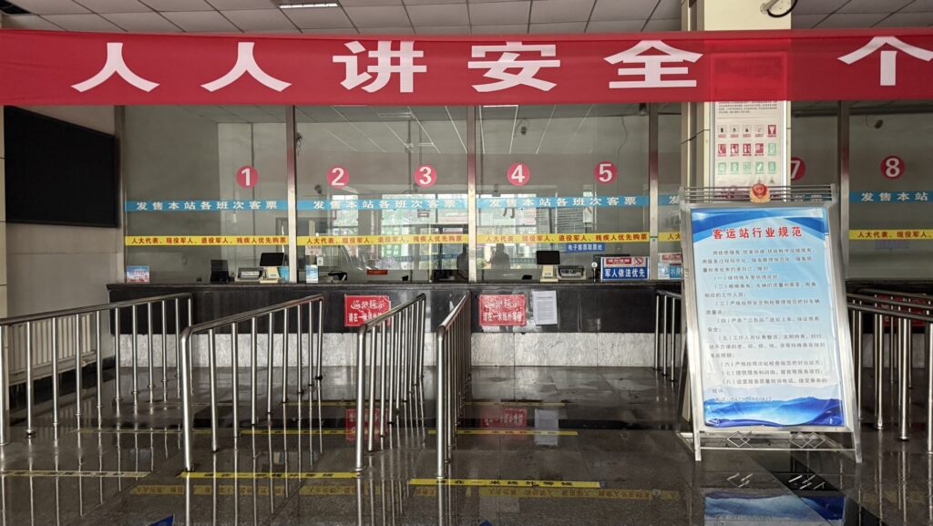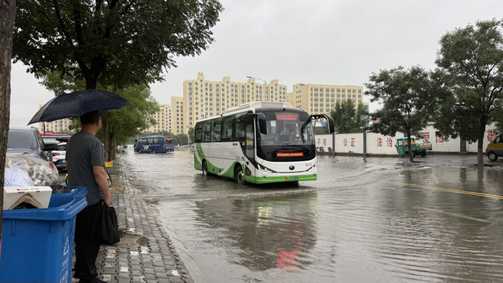 こんな中でもバスは発車してるのでターミナルは機能しているようです。中国の大雨のニュースはよく見るので、これくらいなら通常営業の範囲なのかもしれません。