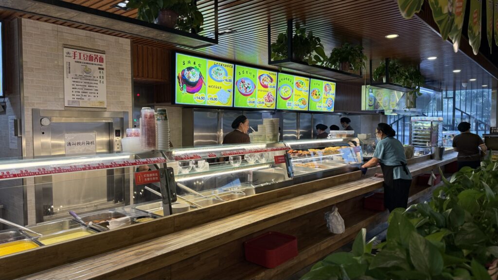 雨が収まるまで近くにあるカフェに行こうかな、と思いましたが道が川なので渡れません。同じブロック内の食堂でしばらく時間をつぶします。