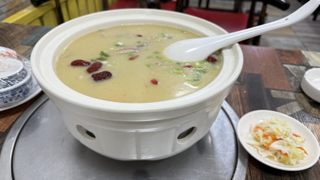 猪肚鸡(豚の胃袋と鶏の薬膳火鍋)で89元(約1,780円)。二人用でも思ったより大きく、なんとか食べ切れるくらいのボリュームです。