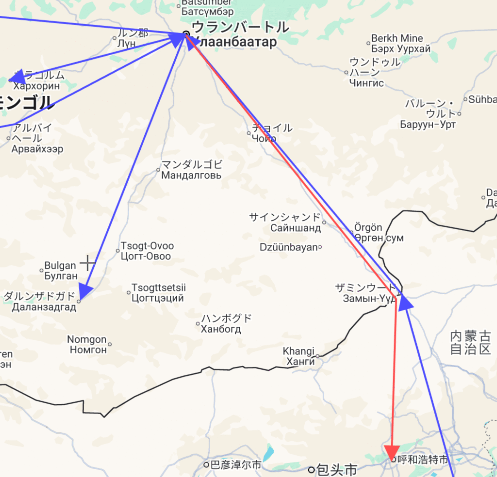 | ウランバートル | フフホト | 月、金 |