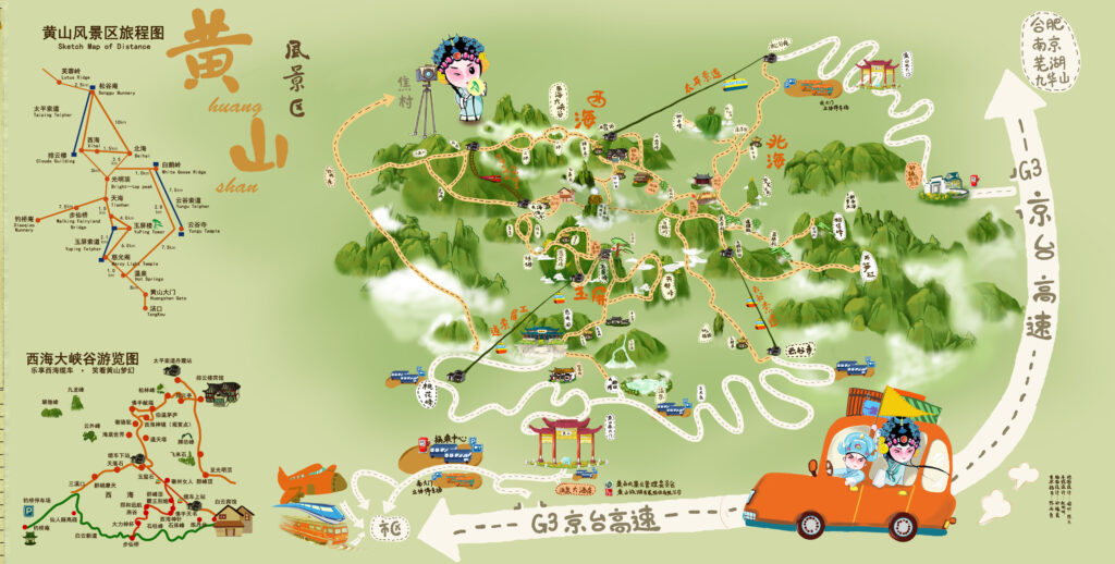黄山全体の地図は以下のような感じです(公式サイトより転載)。