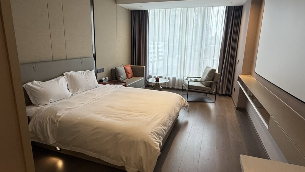 今日のホテルは「樂呈鉑軒ホテル」で、一泊約3,600円。値段の割に建物の外観はいい感じです。写真は夕方に撮ったら変な感じになってしまった。