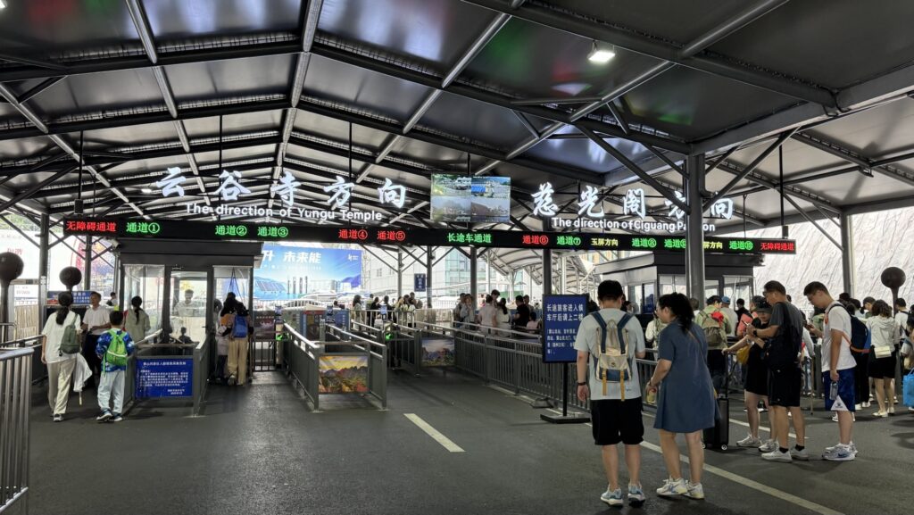 景区から雲谷寺のロープウェイ乗り場までは別のバスに乗り換える必要があり、ここでチケットチェックがあります。
