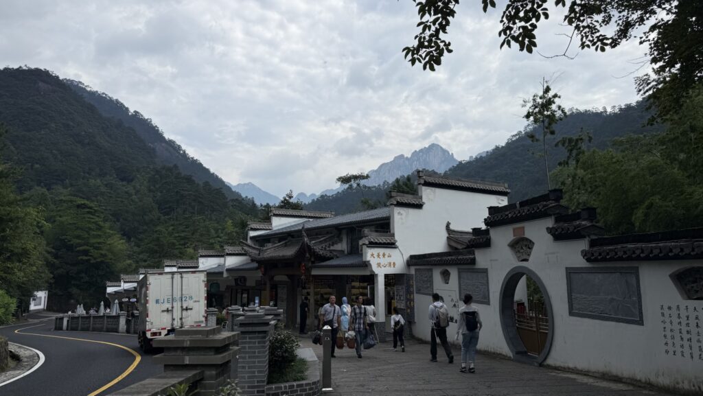 一時間弱で黄山のバスターミナルに到着。周囲にはホテルや旅館が並び、いかにも観光地街っぽい街並みです。このへんに前泊して黄山自体は日帰りで観光する、というのが一般的なようです。
