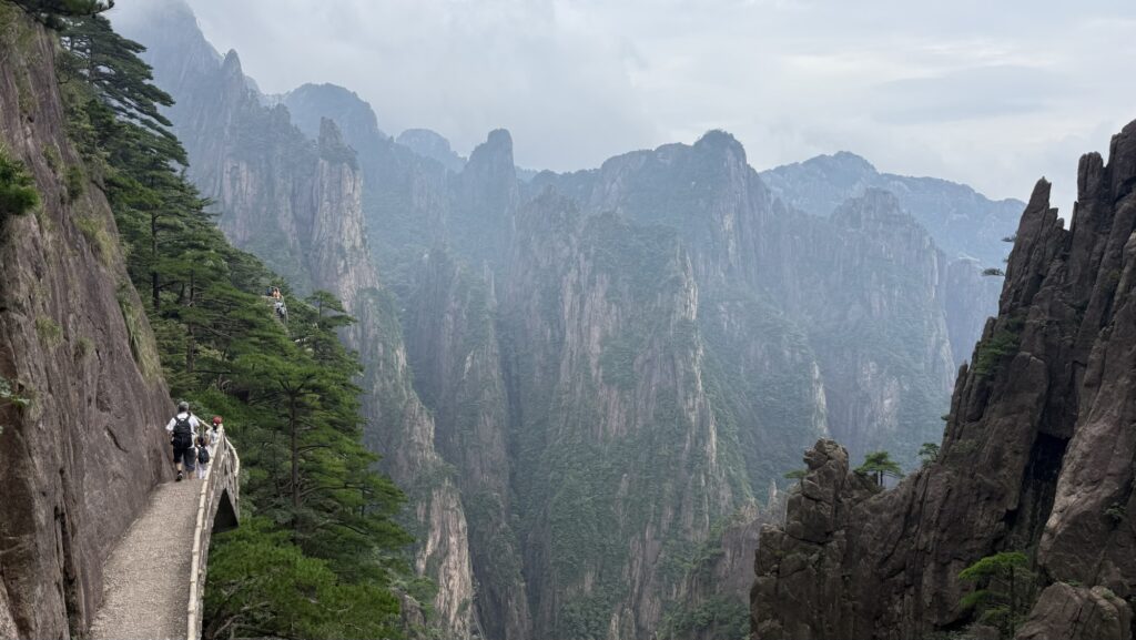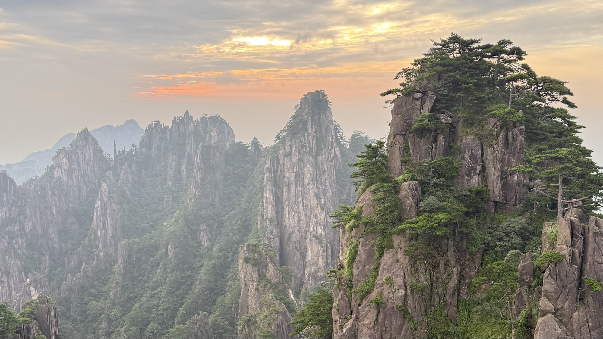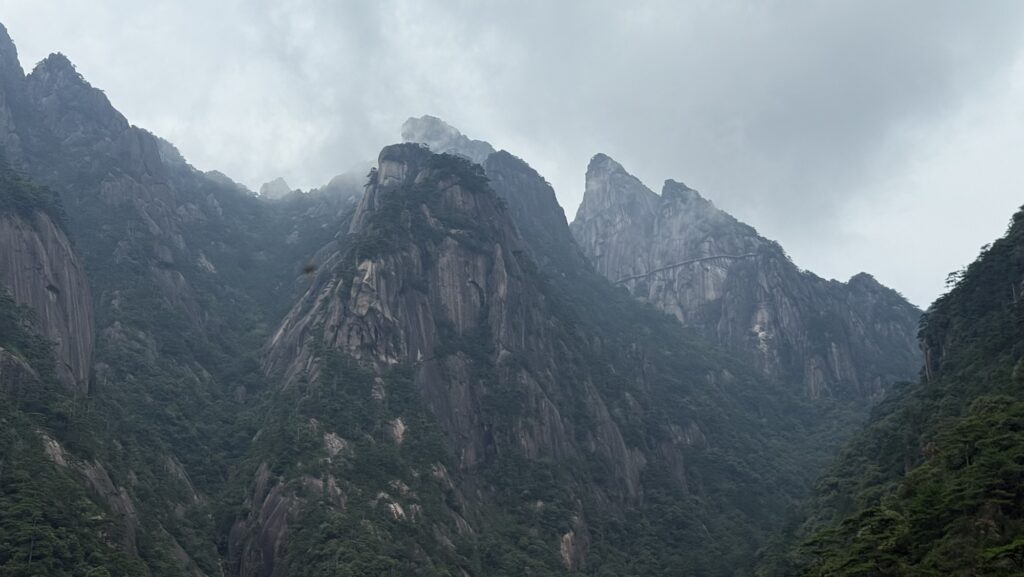 黄山の景観を語るうえで欠かせないのが、断崖に根を張る黄山松と、奇岩が連なる山並みです。岩肌に生える松は風雪に耐えながら独特の形をなし、「迎客松」など名を持つ木もあります。代表的な峰には「蓮花峰」「光明頂」「天都峰」などがあり、いずれも海抜1800メートル前後に達します。
