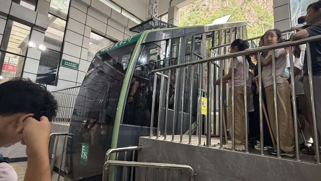 谷底からは山頂に戻るためのケーブルカーがあり、運賃は片道100元(約2,000円)。ここからまた登り返すのはきついのでいくら高くても乗るしかない。