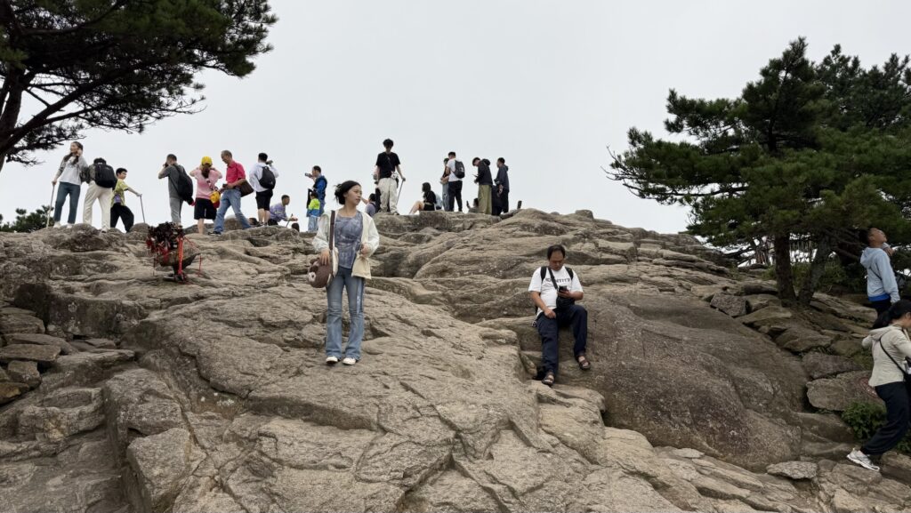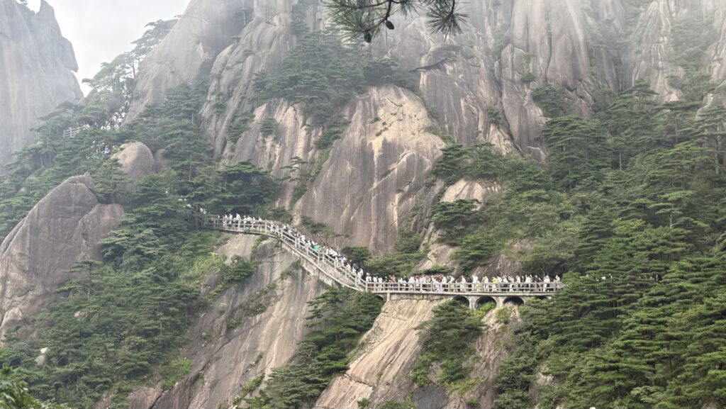 こちらのルートは登ってくる人たちでかなりの混雑です。登山道の中央には仕切りがあって登り降りで通り道が分けられているのですが、中国人はそんなもの守らないのでカオスです。