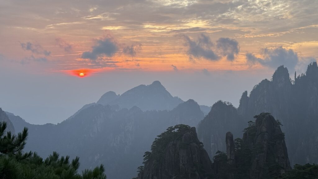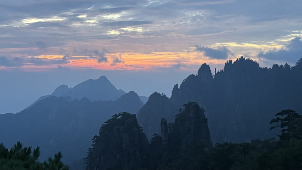 黄山にはいくつも日没スポットがあるのですが、17時前には雨が降り始めたので諦めました。残念ですが歩いている間に降られなかった分マシだと思いましょう。