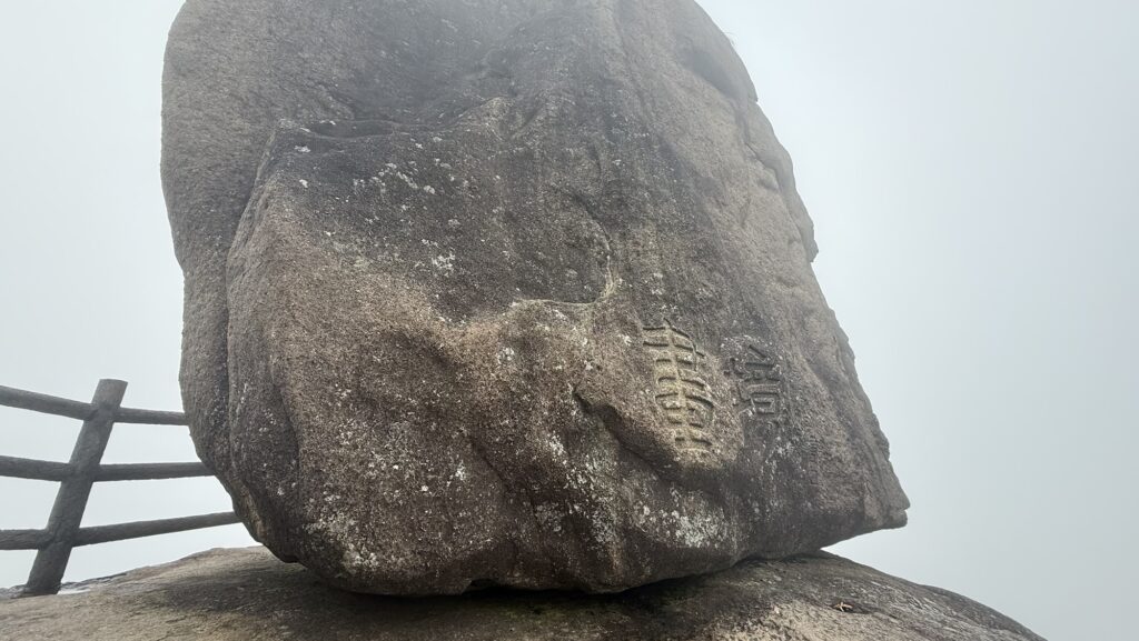 9時過ぎには昨日も通った光明頂に到着。少し霧が晴れてきて、遠くが見張らせるようになりました。