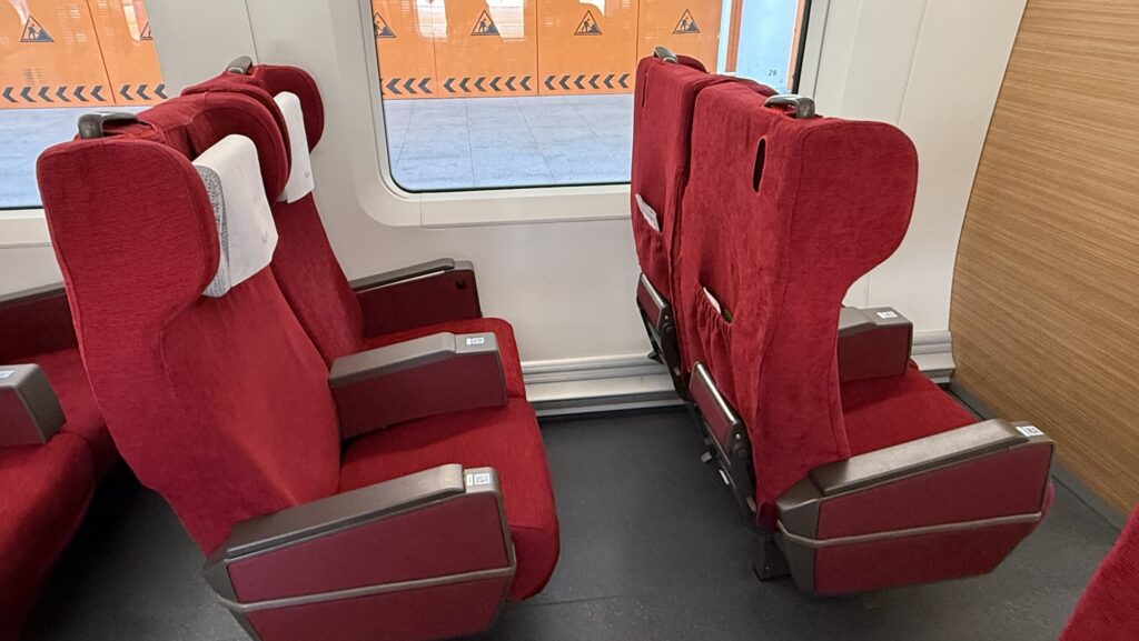 車内はガラガラです。今回の客車はいつもよりいいシートな気がします。赤だから高級感あるように見えているだけかな……?
