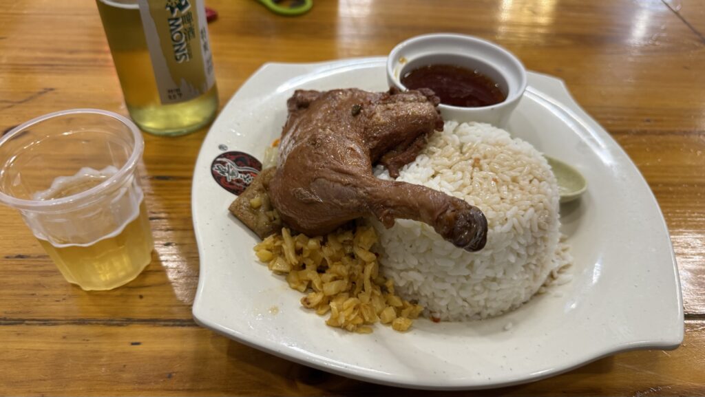 夕飯は近くの食堂で鴨腿飯というライスプレート的なものを(15元、約300円)。近くには屋台も出て賑わっています。