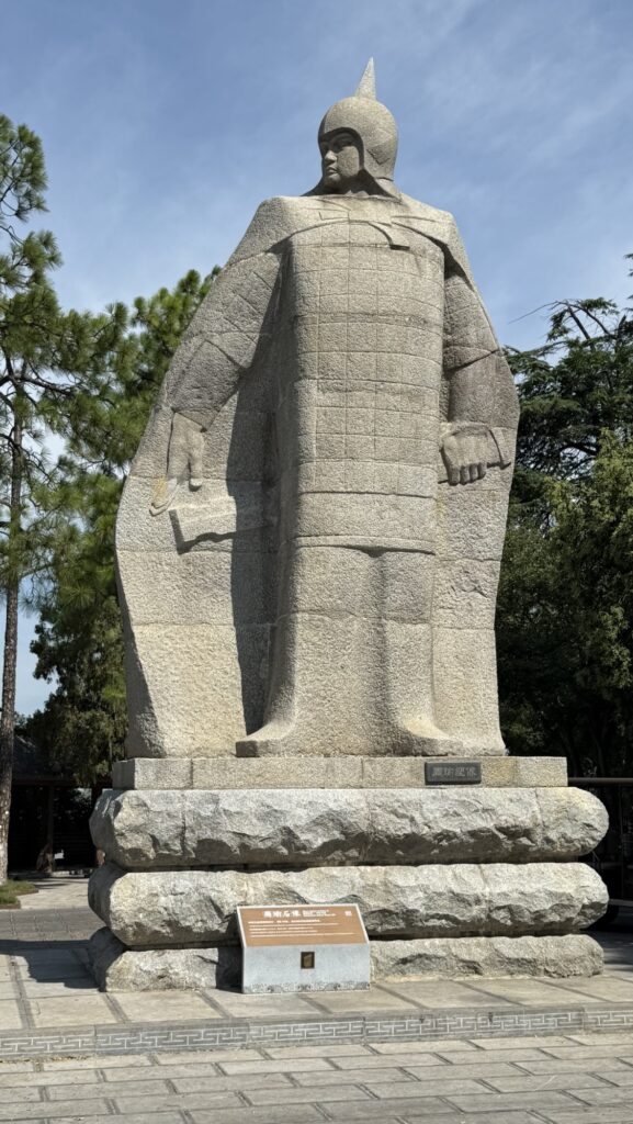 古戦場近くの停留所で観光車を降りると巨大な周瑜像が目に入ります。