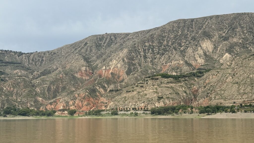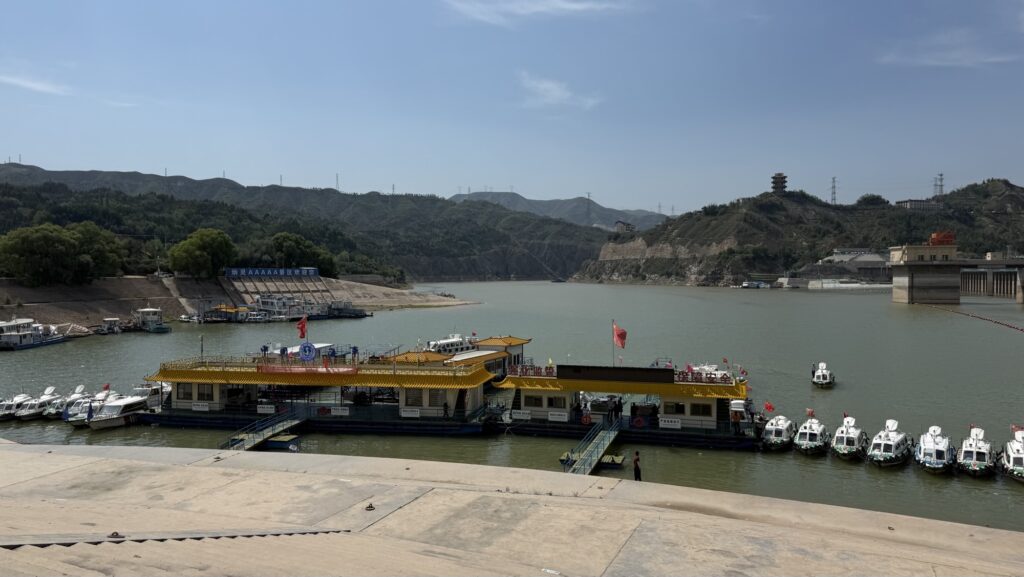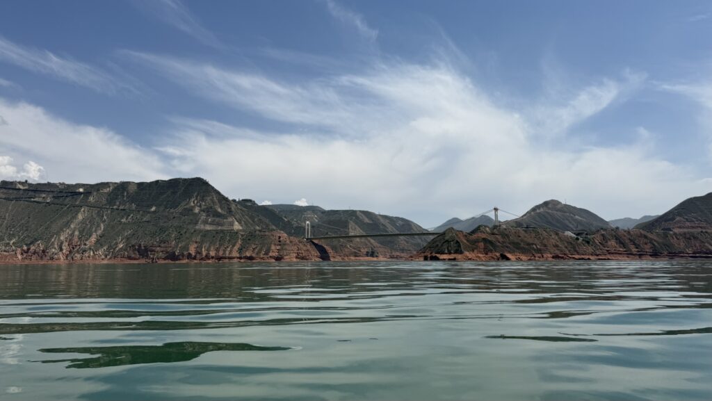 ダム湖あたりではエメラルドグリーンだった水の色が、黄河に入ると茶色に変わります。