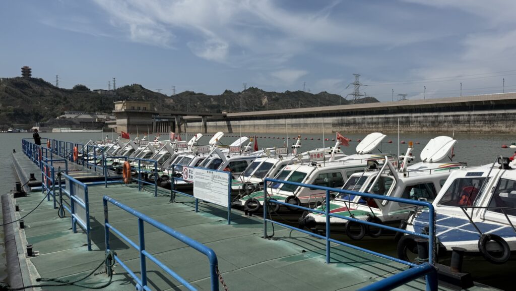 帰り道ではこれから炳霊寺へ向かうボートとすれ違うことが多く、その航走波でボートが飛び跳ねるように揺れます。