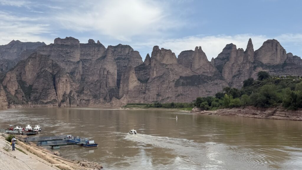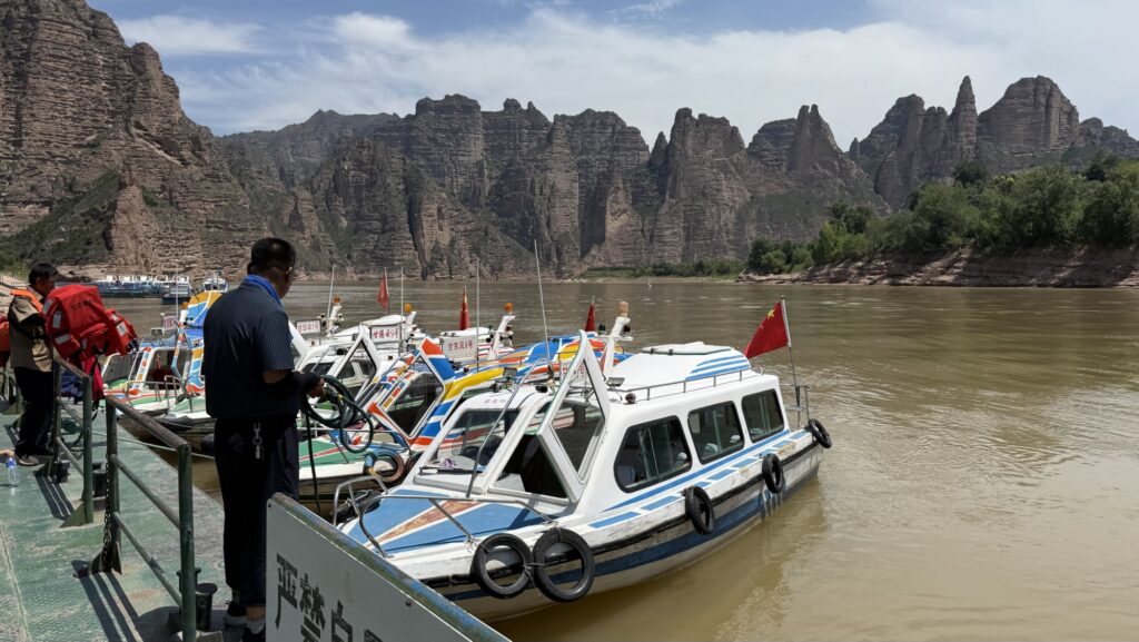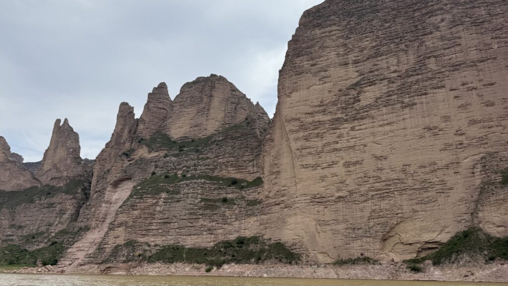 黄河へ入ってしばらく進むと周囲は切り立った崖に。この風景は結構すごいな。こうして削られた土が黄河に溶け込んでいるのか。