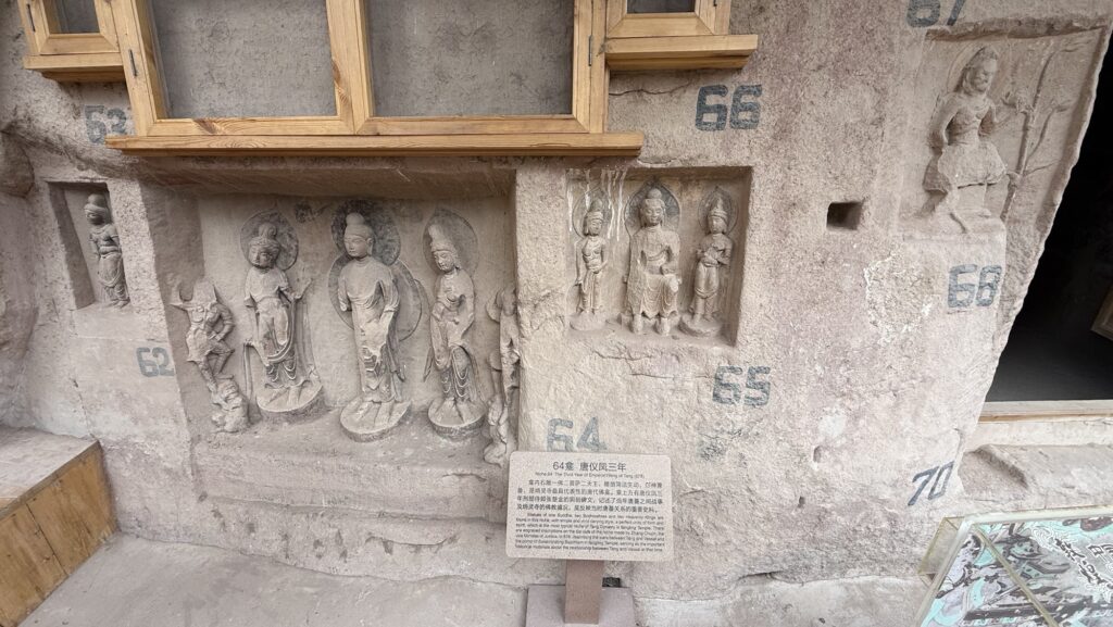 壁面造像で最も目立つのは、唐代に彫られた高さ約27メートルの大きな弥勒仏像です。