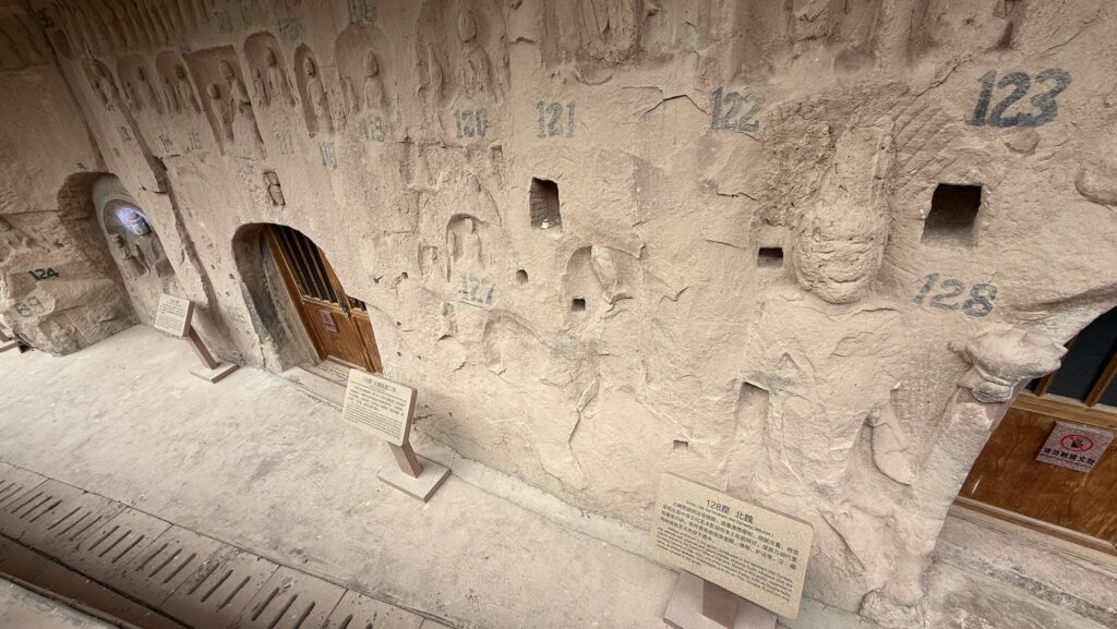 上部にある二つの穴はそれぞれ西秦・北魏時代の石窟で、これらが特別窟として公開されています。