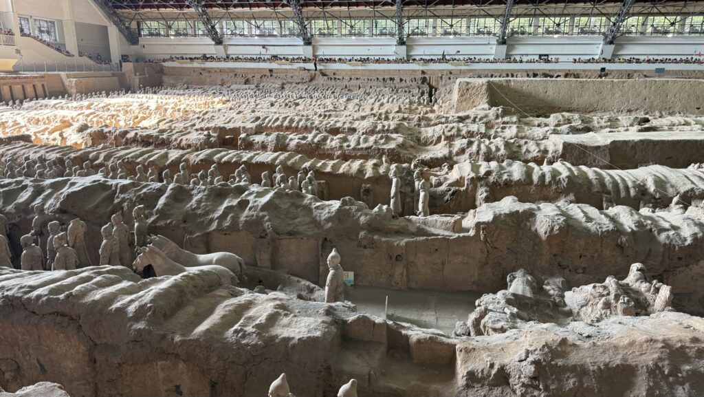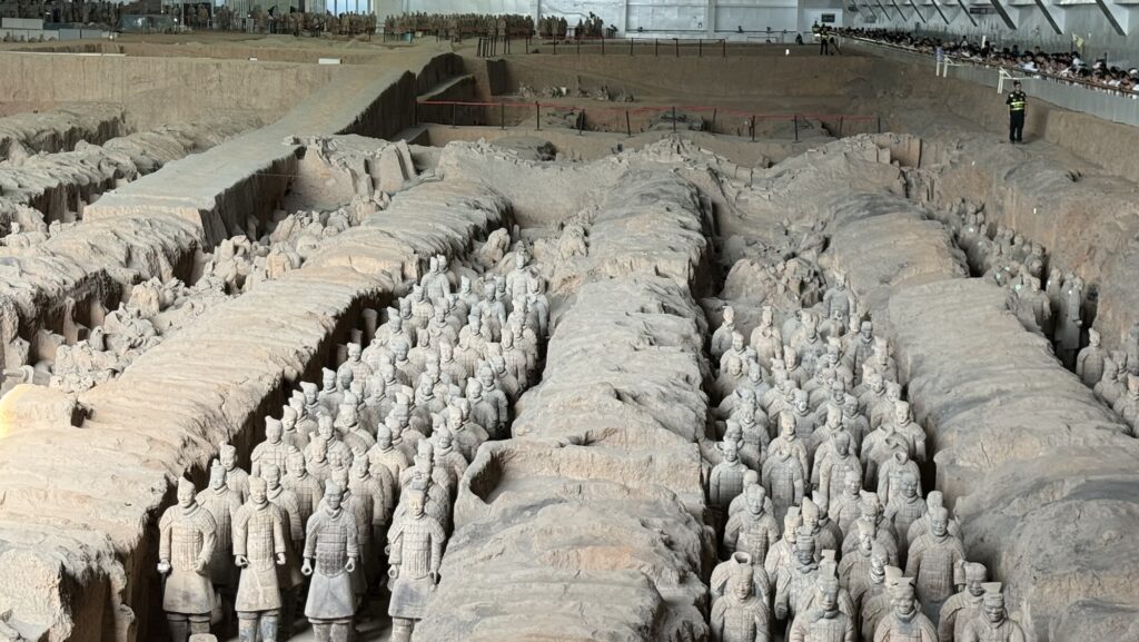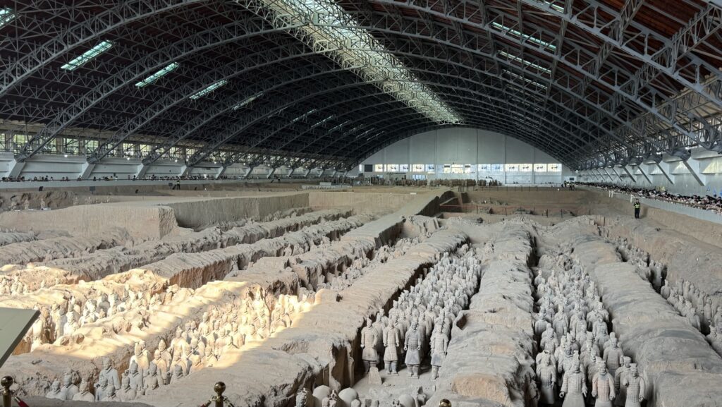 1974年に地元農民が井戸を掘る際に偶然発見され、その後の発掘によって約8000体に及ぶ兵士俑、馬俑、戦車が出土しました。