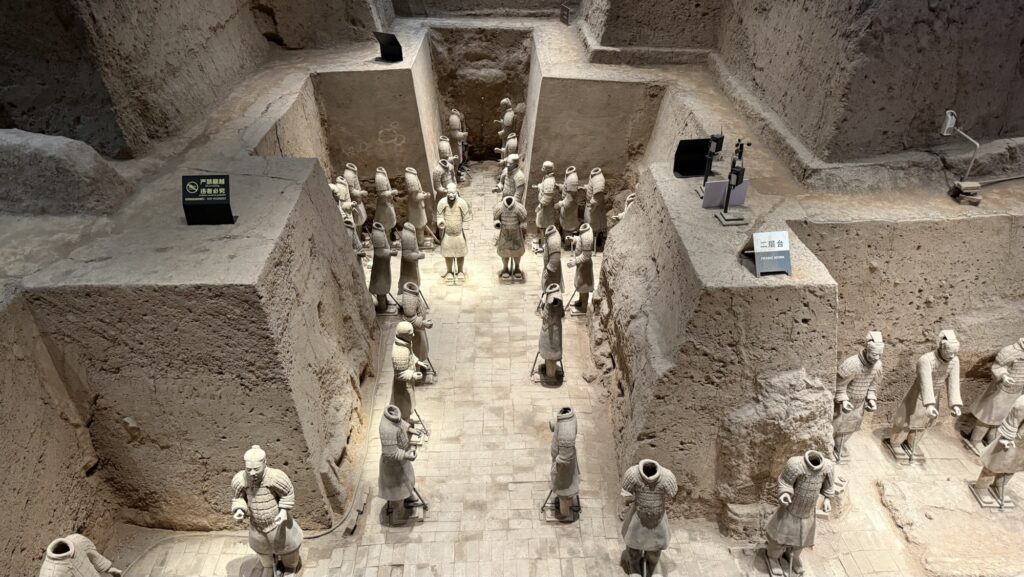 兵馬俑一号坑は、始皇帝陵の東約1.5キロに位置する兵馬俑坑群の中で最も大規模な坑です。