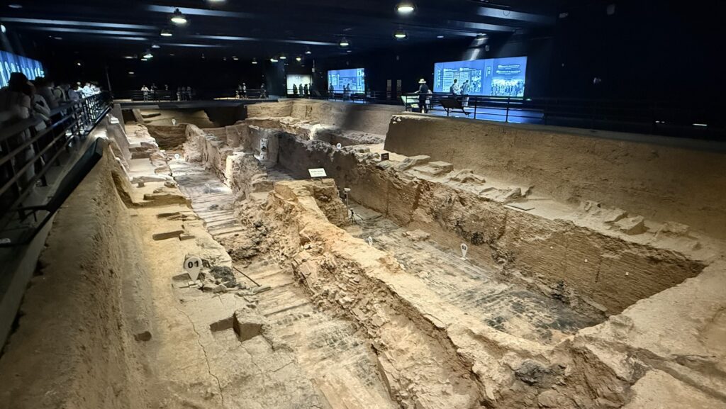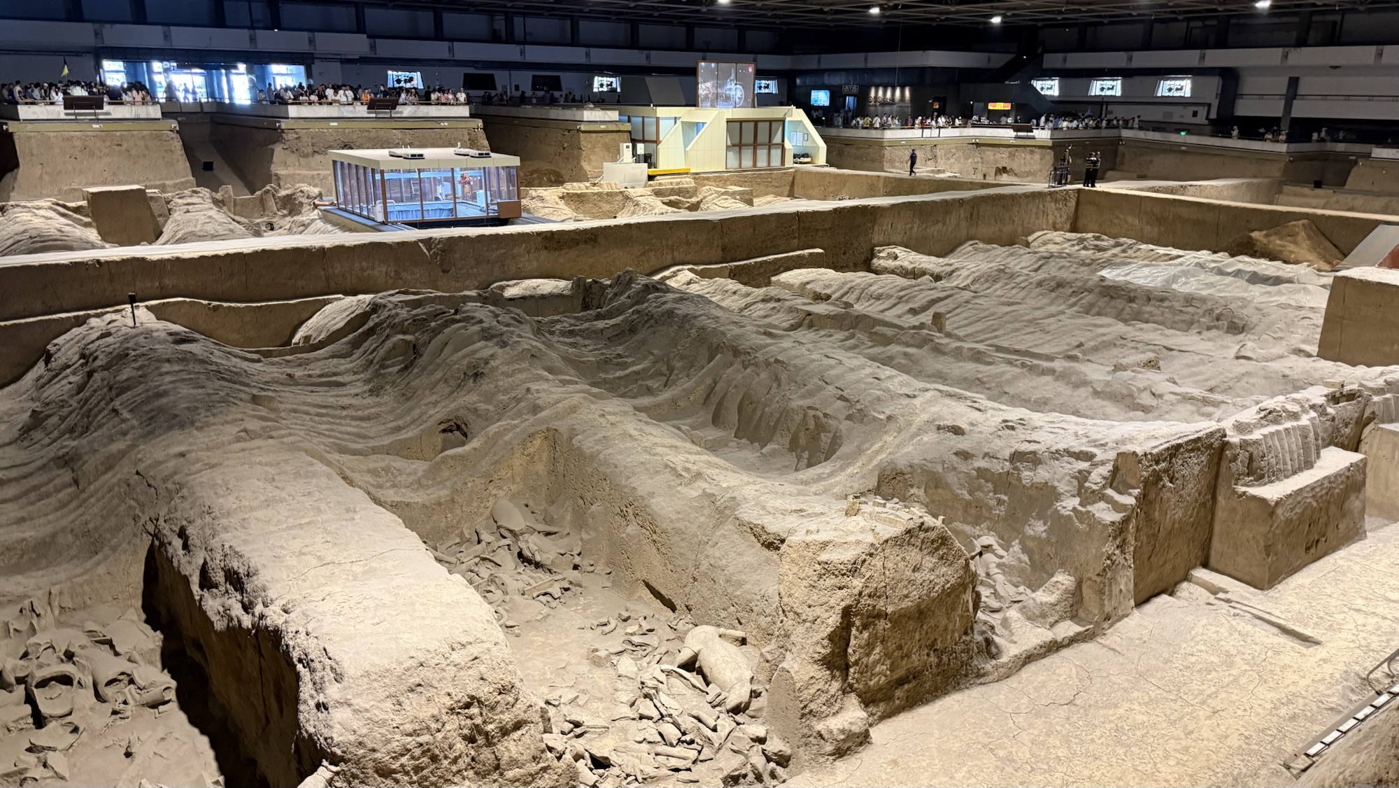 遺跡自体は屋根で覆われた屋内にあります。扇風機はありますが兵馬俑よりは暑いです。