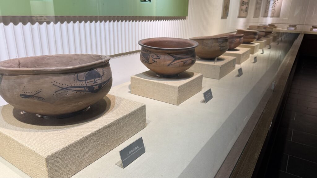 墓域と生活域が明確に区分されており、当時の社会構造をうかがうことができます。また、陶器には魚や人の模様を描いた彩陶が多く見られ、信仰や生活の様子を示しています。現在は「半坡遺址博物館」として整備され、発掘現場の一部をそのまま展示し、仰韶文化の実像を知ることができる場所になっています。