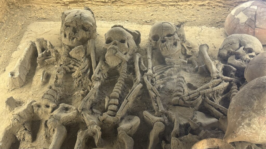 墓中では生前に切断されたとみられる人骨の断片(指や肢端など)が出土しています。これは生者の体の一部を切り取り死者と共に埋葬することで、死者と生者を結び直す宗教的儀礼と考えられているそう(割体)。