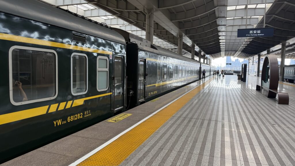 高速鉄道の方が早いのですが、出発駅の西安北駅が少し離れているため西安市内の移動が面倒です。今回はホテルに近い西安駅から普通列車で孟塬まで行くことにしました。