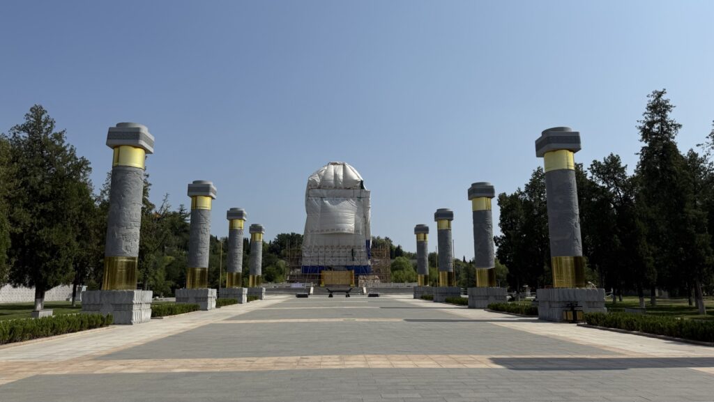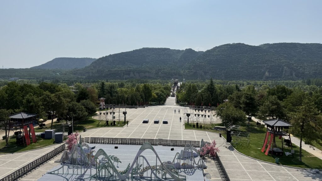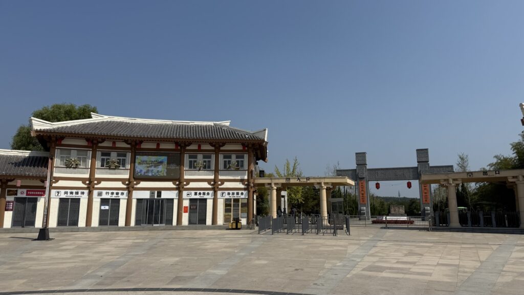 観光車に数分乗り、巨大な老子像の前で降ろしてもらいます。ここから老子廟を通って函谷関の建物のほうに抜けていくのが主な観光コースのよう。