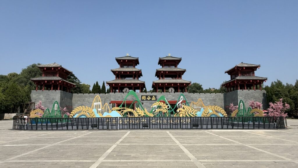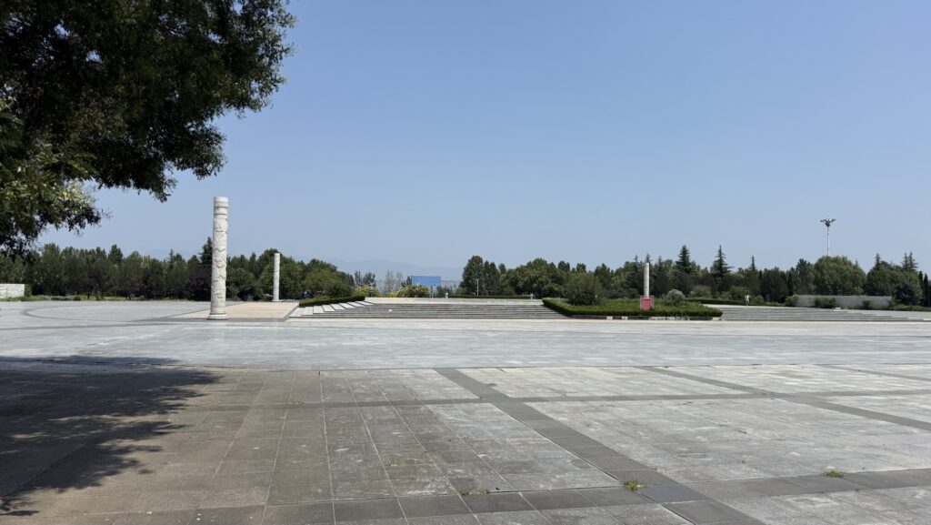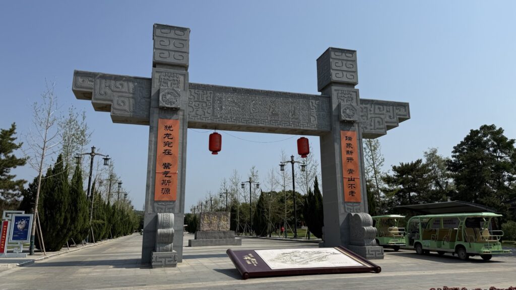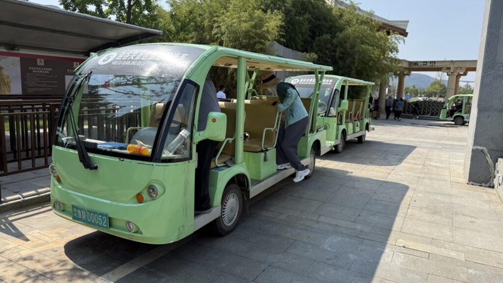 函谷関の建物は入口からかなり離れたところにあるので、この時期に歩きだと暑さがきついと思います。中国ではこんな感じで観光車に乗らせる作りにしている観光地が多いな。