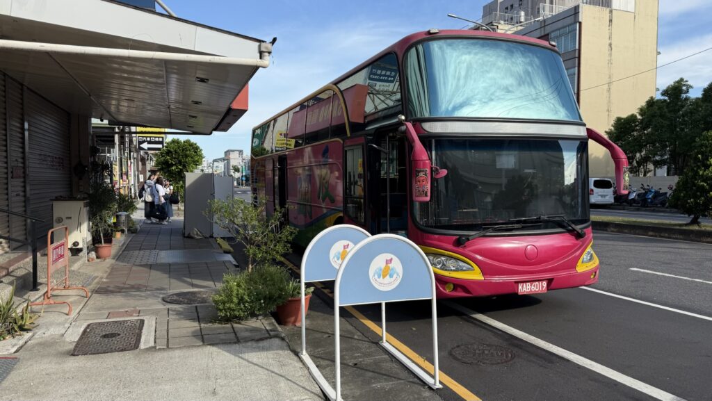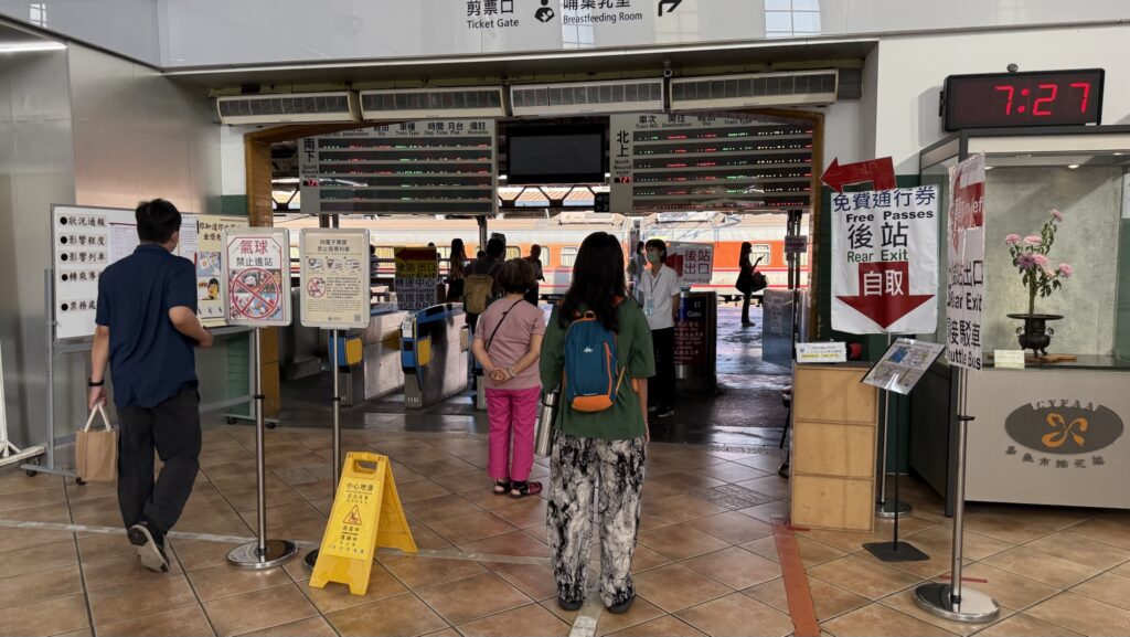 布袋港への観光バスは駅の後站(西口)側から発車します。ホテルのある前站(東口)側からは線路を越えて移動する必要があります。
