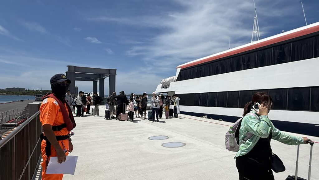 座席はほぼ満席です。こんな満員になるような船に乗るのは久しぶりだな。乗客はほぼ台湾人で、欧米人がちらほら、という感じです。