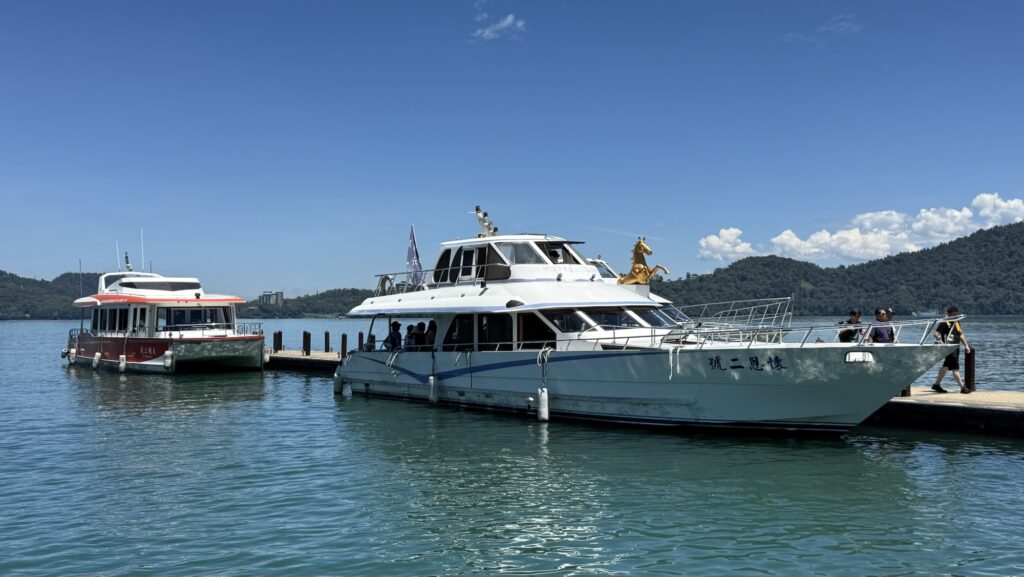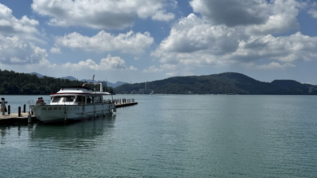 ロープウェイを降りた後、伊達邵の湖畔にあるボート乗り場へ。ボートは伊達邵→水社→玄光寺という三か所を順に航行しており、好きなところを起点に一周できます。