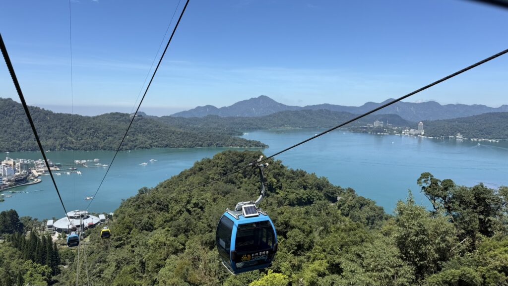 湖畔から山の上にある少数民族テーマパーク「九族文化村」を結ぶロープウェイです。