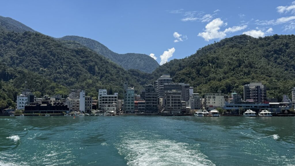 この辺が湖の丸いほうで日月潭の「日」に当たる部分なのかな。左手が伊達邵、右手奥が昨日到着した水社集落です。